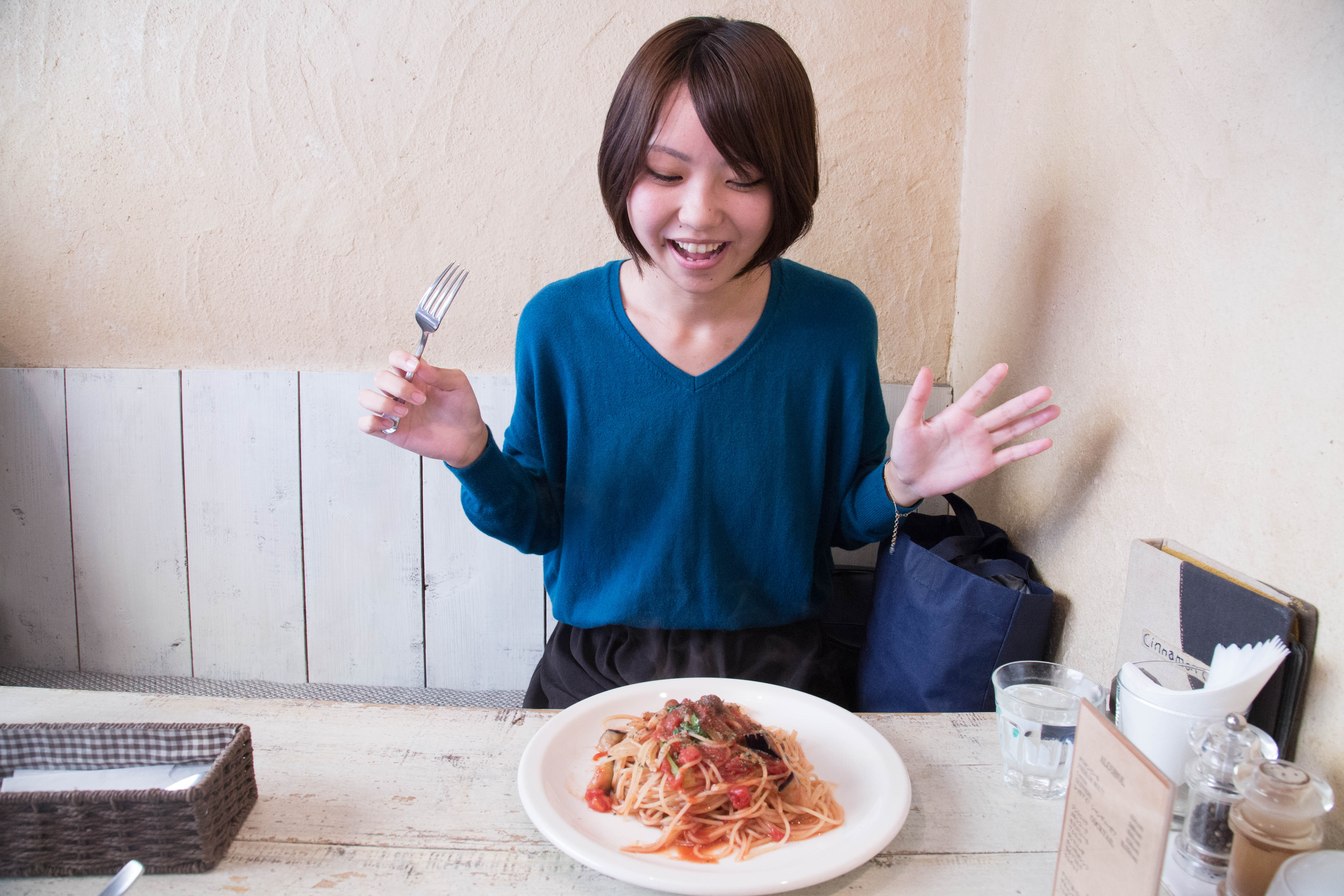 Follow @okinawa_freesozaiパスタを食べようとしている美少女の写真です。